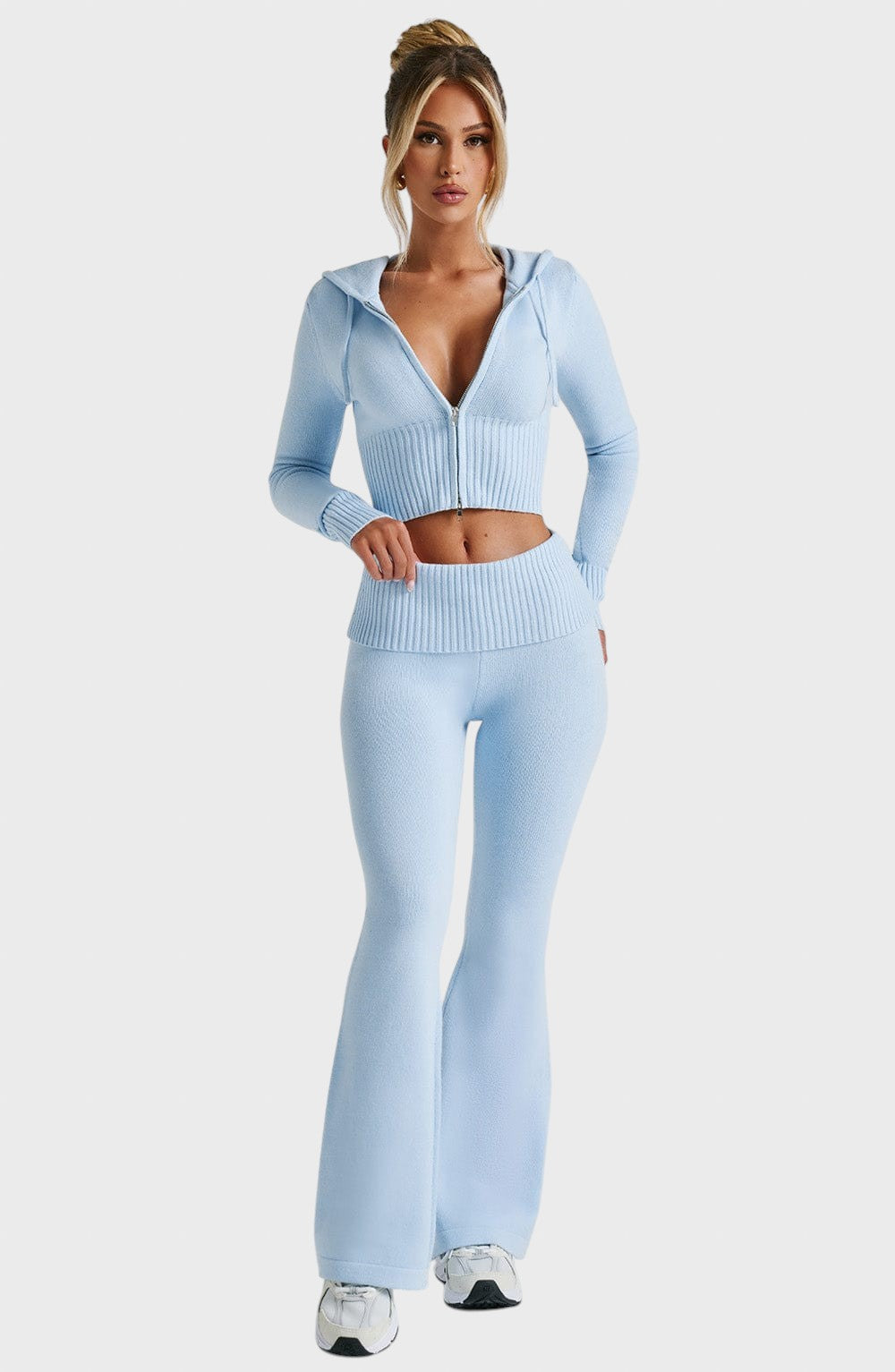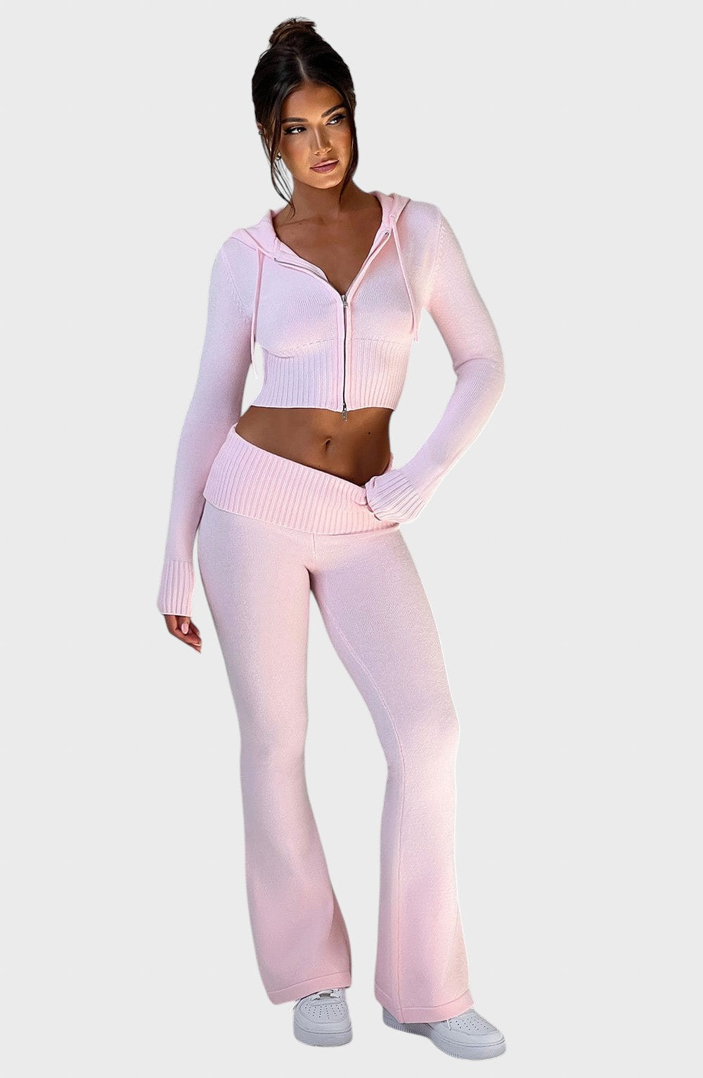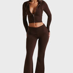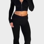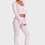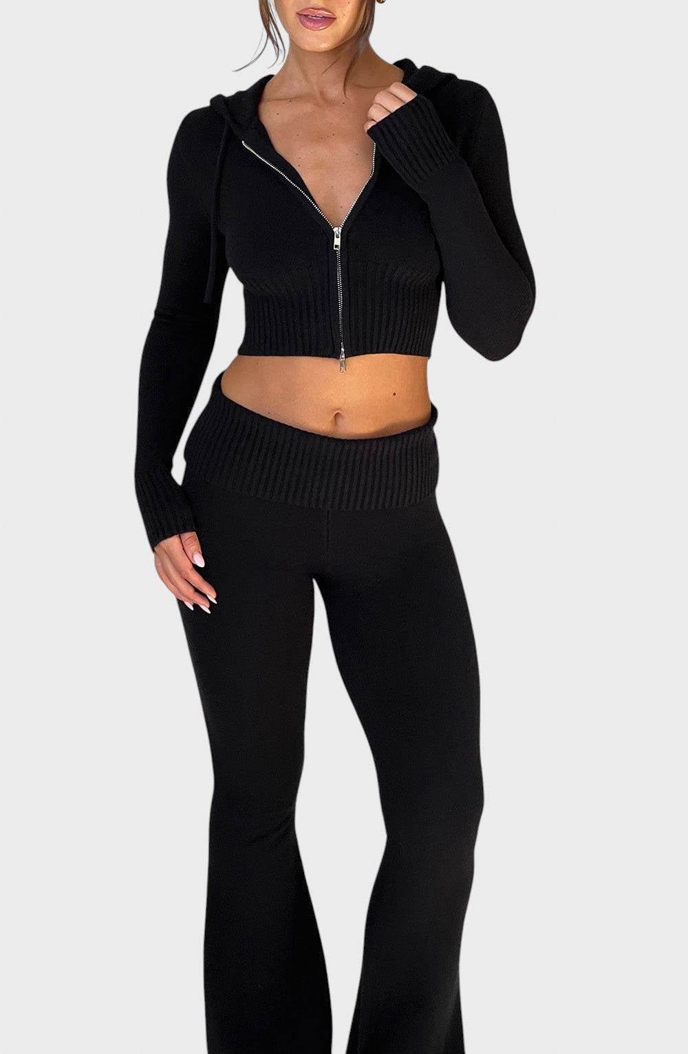 Открийте перфектния баланс между комфорт и чувствен стил с този комплект от оребрена плетка. Той е идеалният избор за непринудена, но елегантна визия , идеален за уикенда, пътуване или релакс със стил.