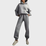Съчетава класически, непринуден вид с предимствата на целодневния комфорт, което го прави идеален за релакс у дома или за стилно пазаруване. Обмислената кройка и меката материя осигуряват комфорт, без да жертват изискан външен вид, което го прави универсален ансамбъл за всеки ежедневен повод.