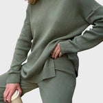 • Целодневен комфорт: Изработен от мека плетена материя, този пуловер предлага несравним комфорт и топлина. Свободната кройка и спуснатите рамене гарантират, че дрехата не ограничава движението, позволявайки пълна свобода на движение.