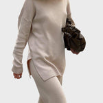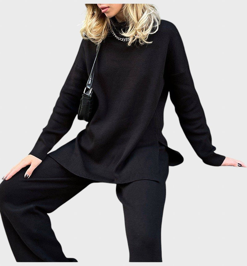 Lyuba™ - Оувърсайз плетен пуловер с поло яка