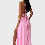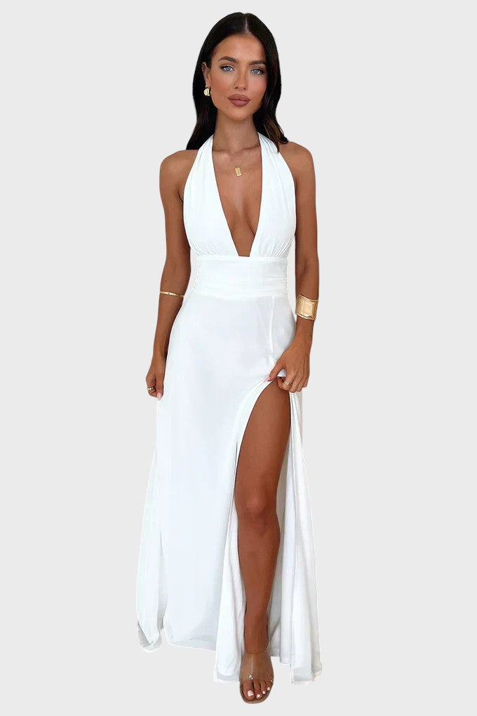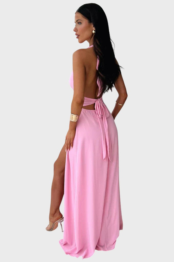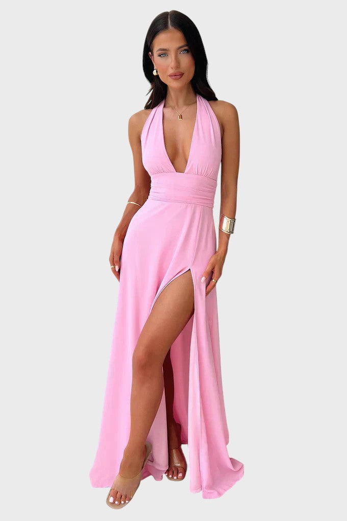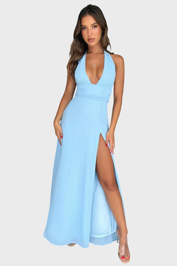 Излъчвайте елегантност с роклята Alicia, перфектната комбинация от изтънченост и чувственост. Развяващата се материя и дълбокото V-образно деколте осигуряват елегантен и непринуден вид за специални поводи.