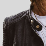• Сдържана елегантност: Класическият дизайн с байкърски детайли и ватирани акценти добавя текстура и индивидуалност, допълвайки всяко облекло със смел щрих.