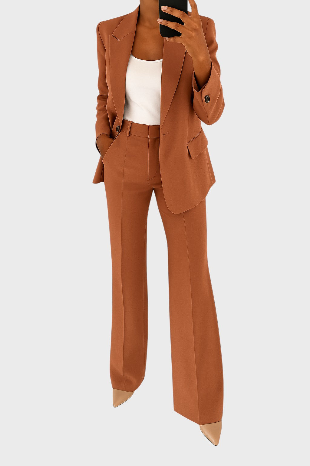 • Класическа, структурирана кройка: Проектирана с непреходен външен вид и перфектно скроена кройка, която осигурява елегантен силует и уверен, сигурен външен вид през целия ден.