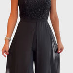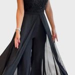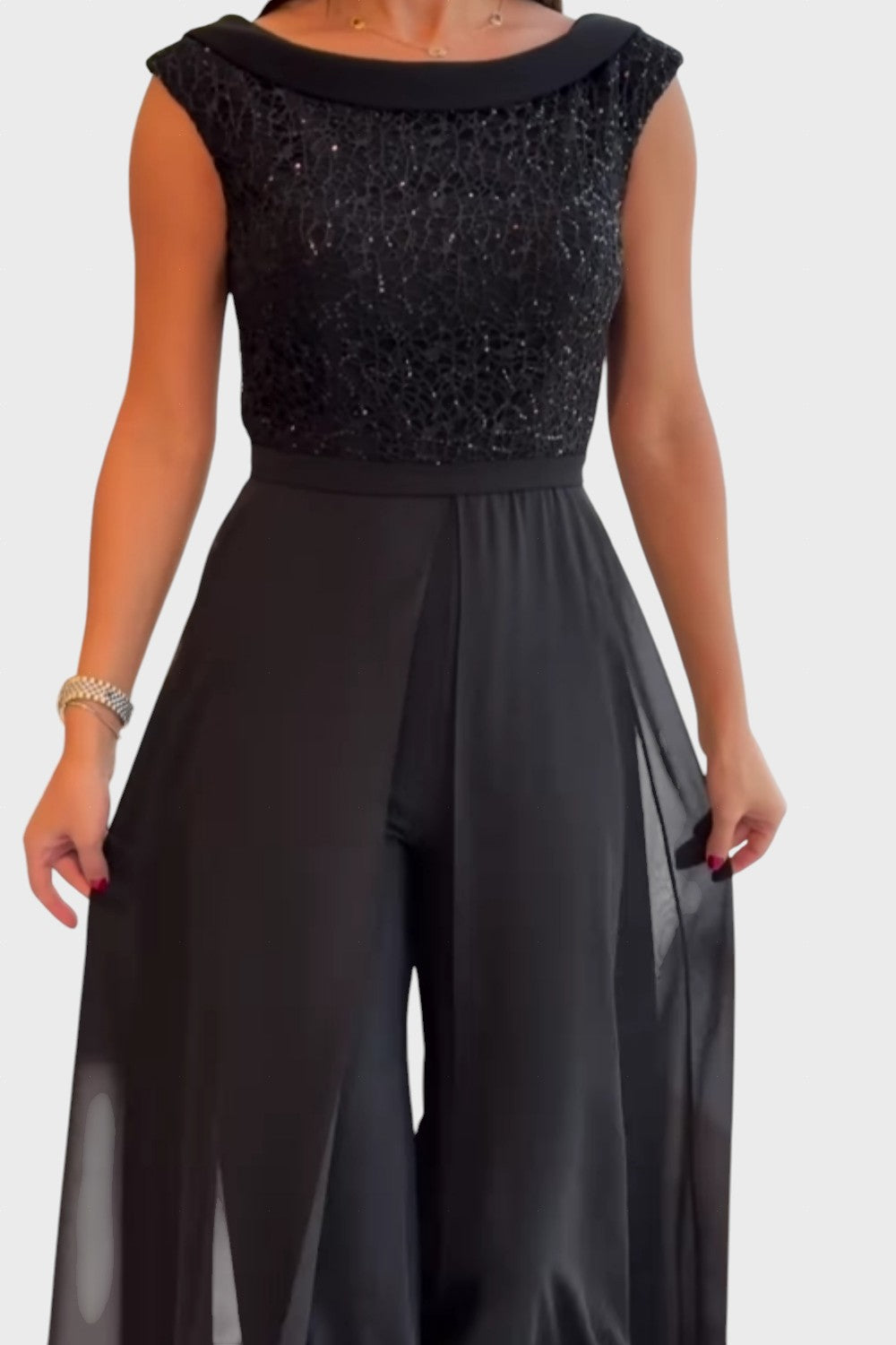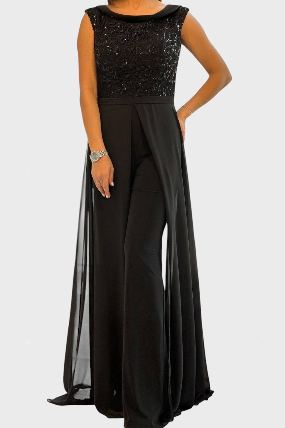 Този гащеризон съчетава класическа кройка с модерни детайли. Дизайнът се отличава с фина текстура и ласкателна кройка, която подчертава естествените линии на тялото. Моделът без ръкави го прави идеален за по-топлите дни или за създаване на многопластова визия през по-студените сезони.