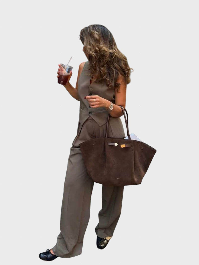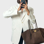 • Мека велурена текстура: Изработена от велур, чантата предлага топло, тактилно усещане, добавяйки дълбочина и небрежно елегантен щрих, идеална за преходните сезони.