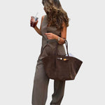 Нека архитектурният дизайн се срещне с тактилния комфорт в този модерен куфар. Този модел е идеален за тези, които търсят аксесоар, който е едновременно функционален и стилен, съчетаващ уникален силует с луксозна текстура. Той е идеалният аксесоар, който ще подобри ежедневната ви визия , добавяйки нотка изискан бохо-шик и земна елегантност към вашия стил.