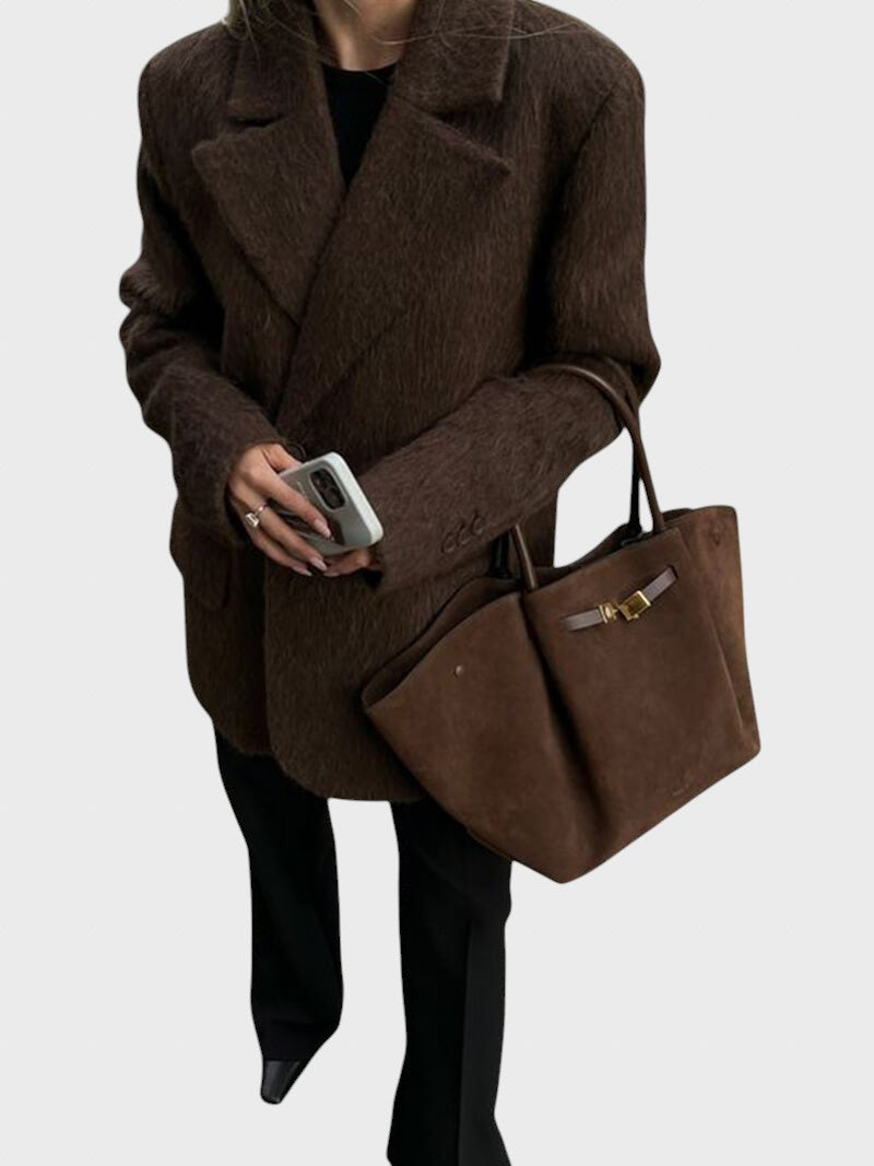Уютна структура: Велурена чанта тип „тоут“ със скулптурен дизайн!